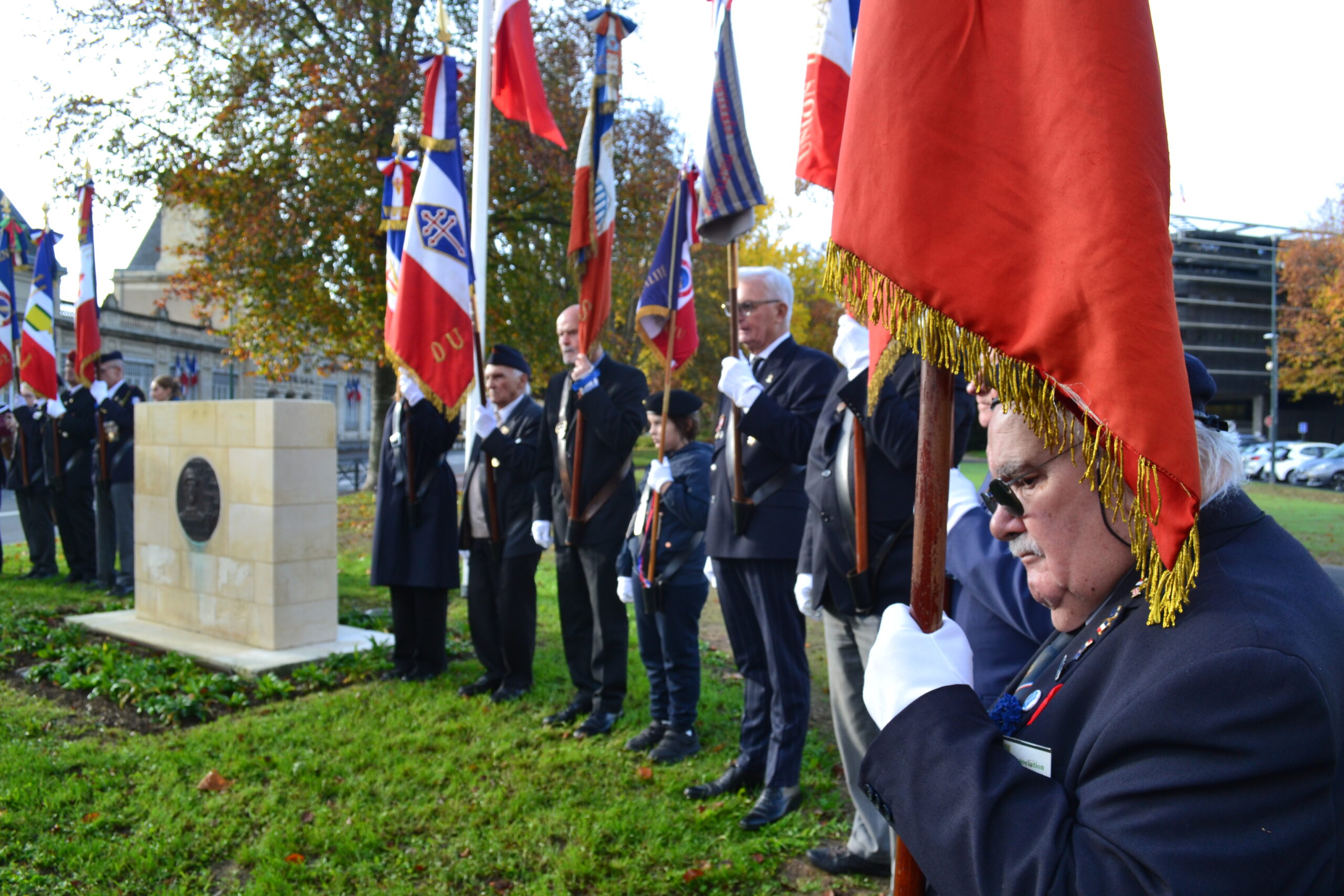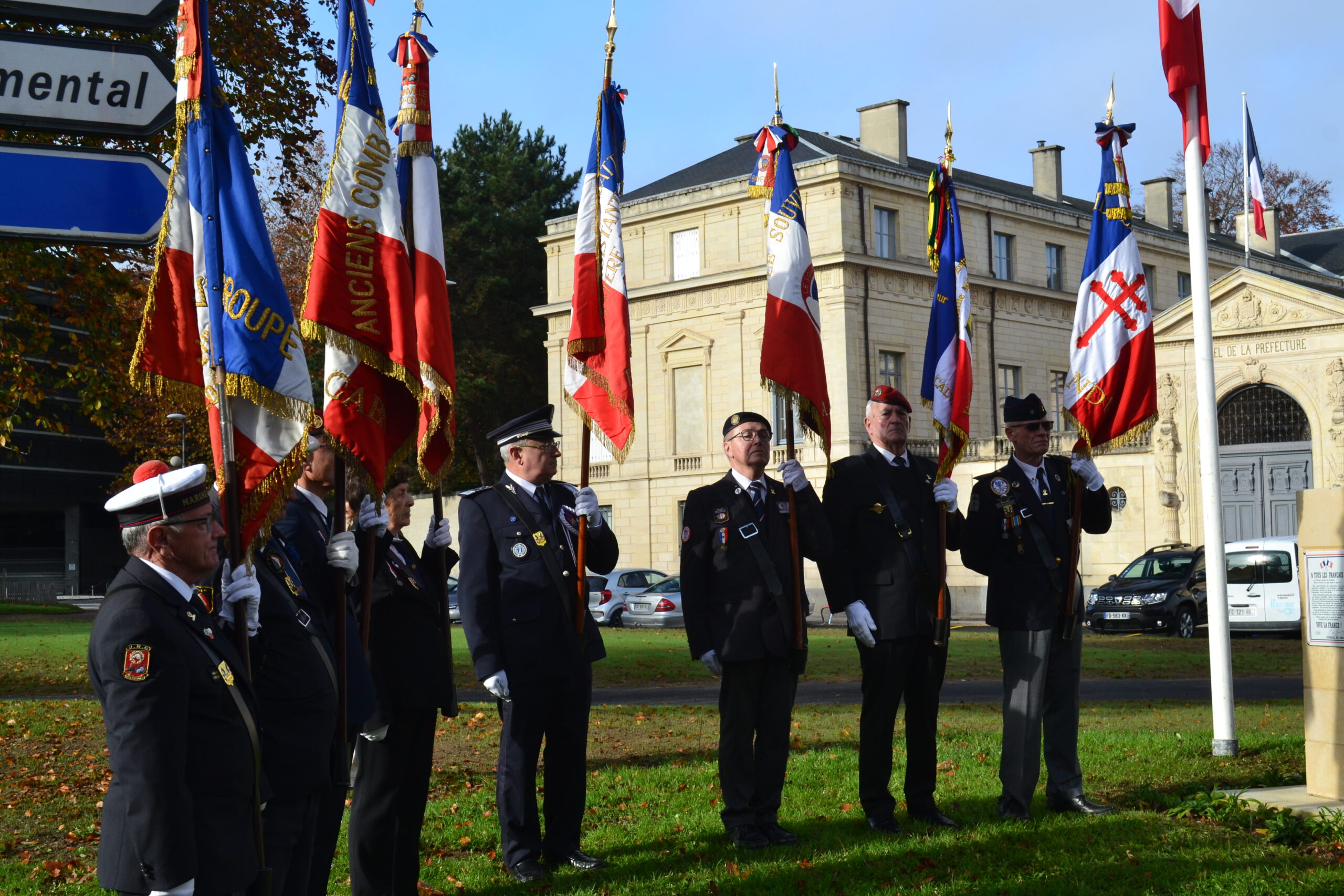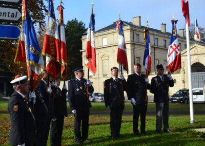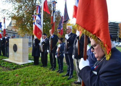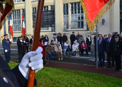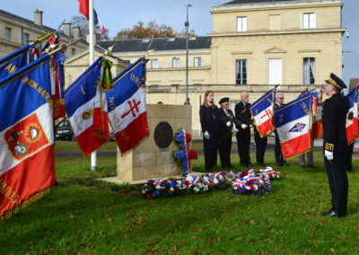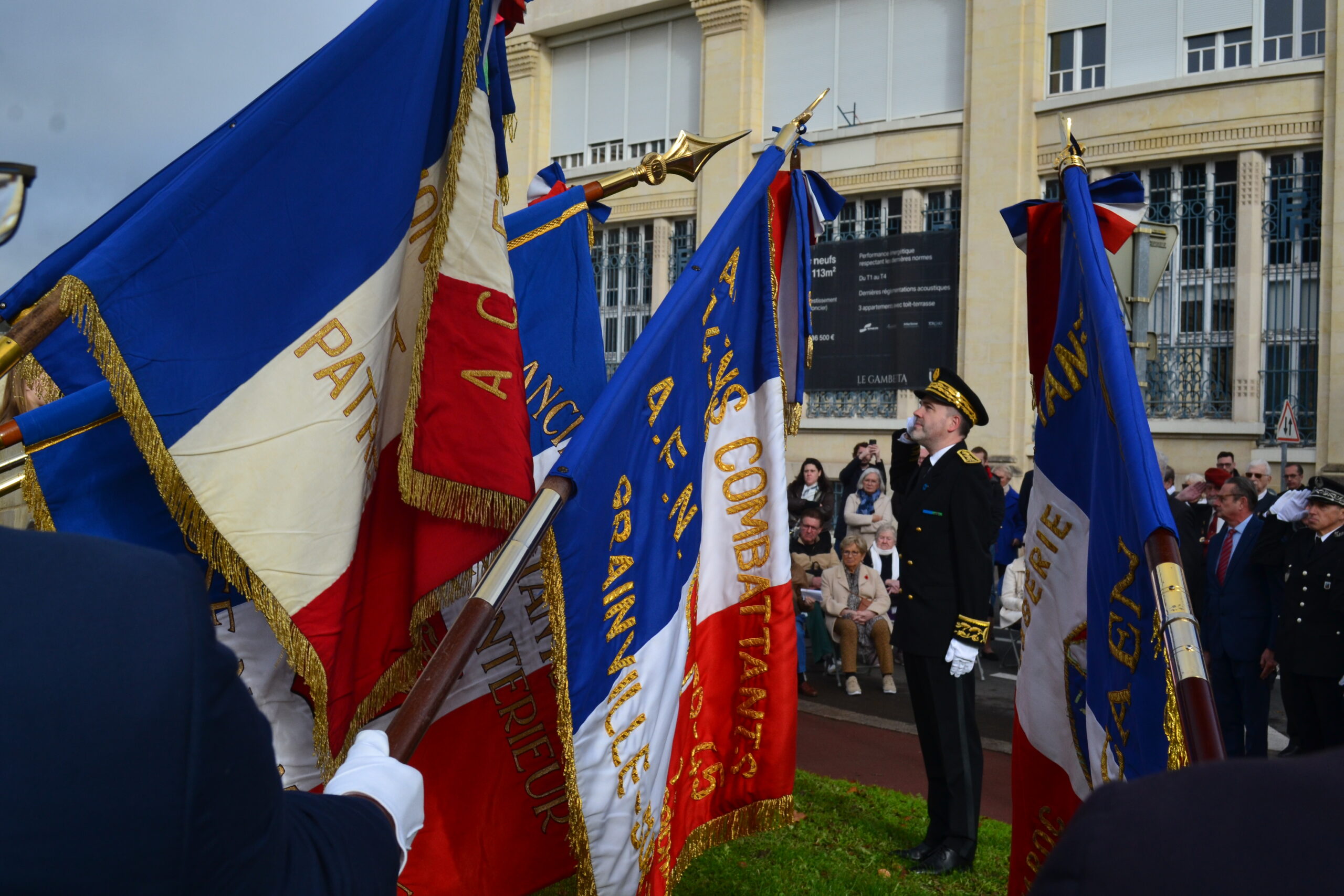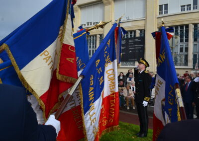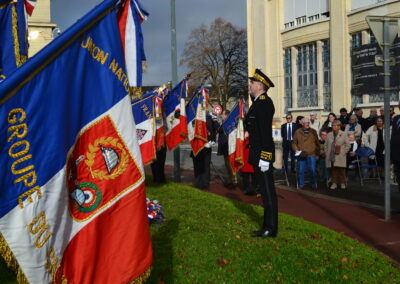 Une multitude de drapeaux d’anciens combattants s’inclinent durant 5 longues minutes de silence. A l’issue, un ancien combattant présent déclare : « Dans les régiments, il faut un porte-drapeau, fier, courageux. De Gaulle c’était ça ».