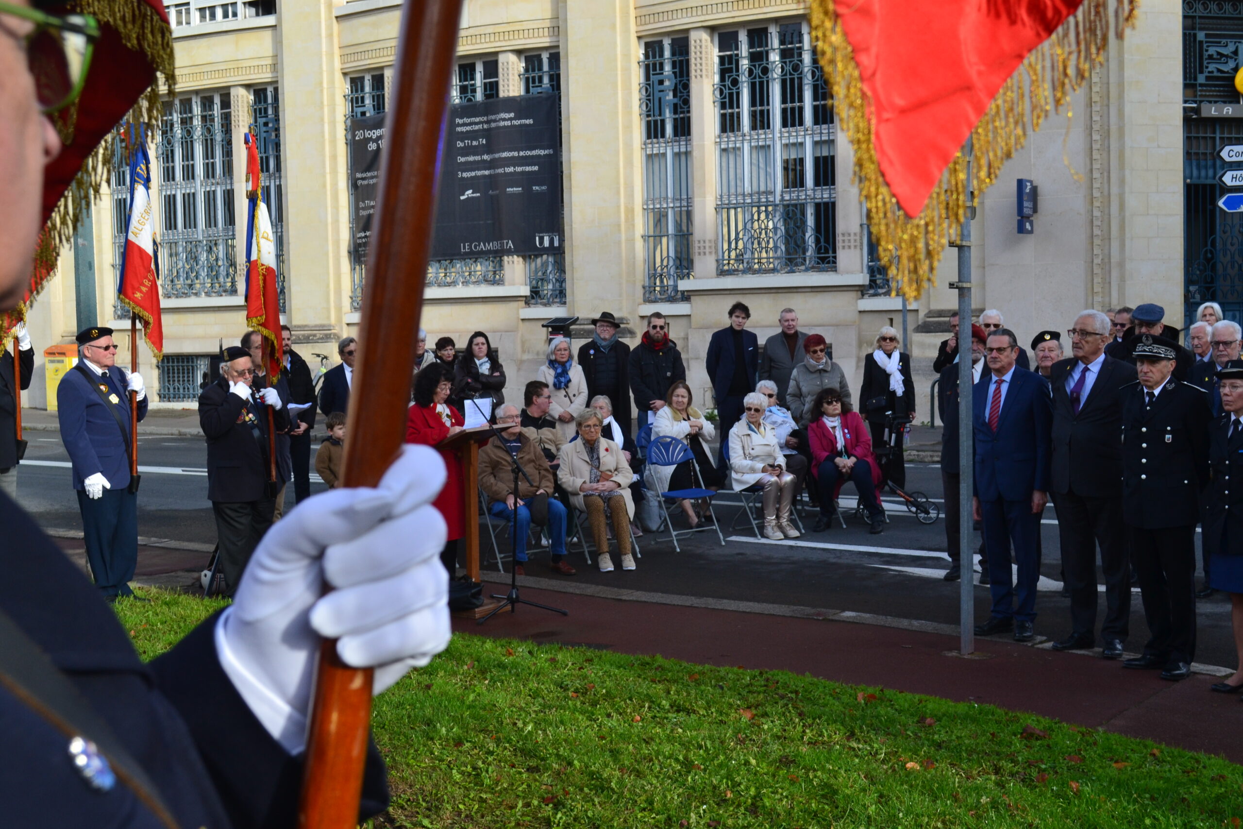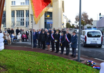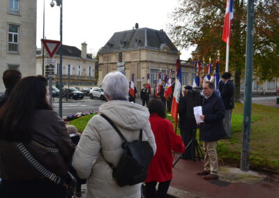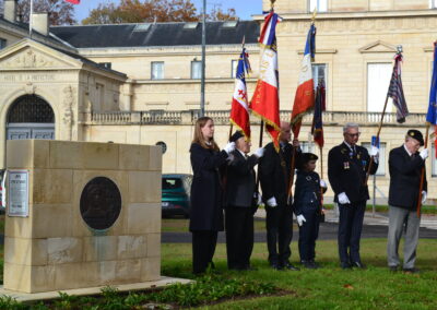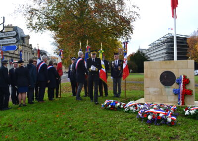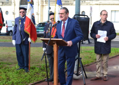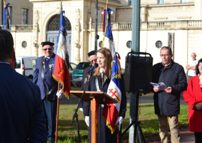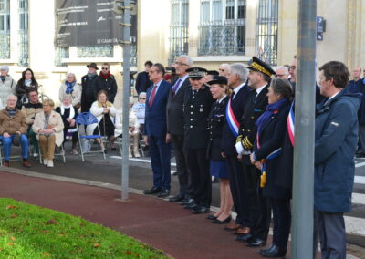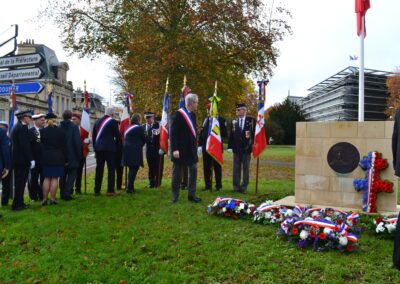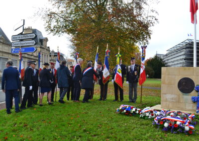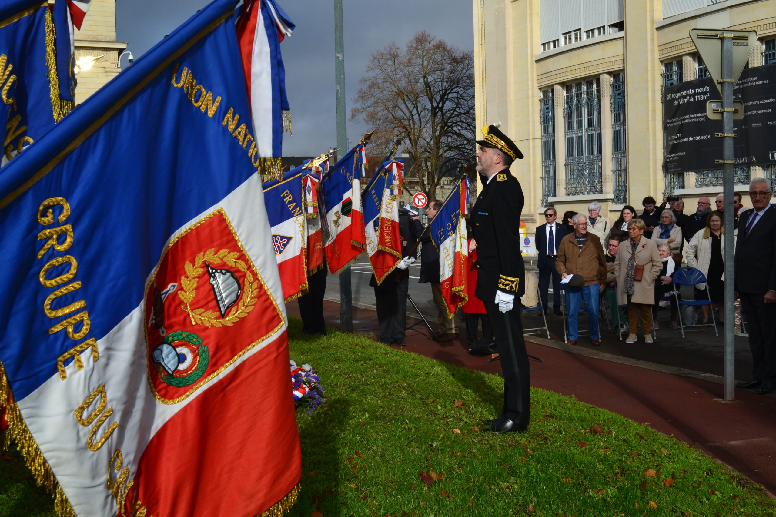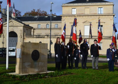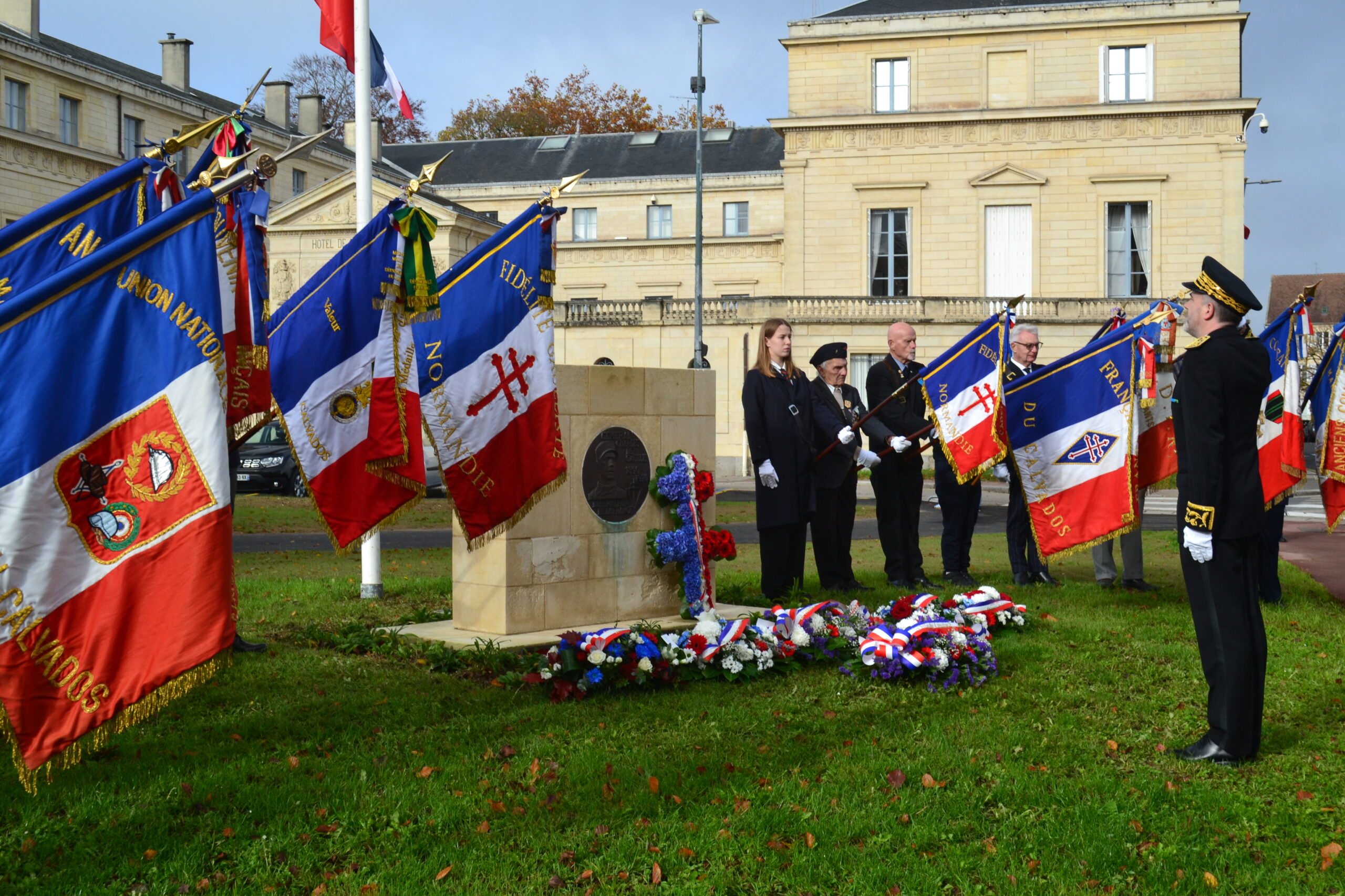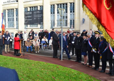 Une multitude de drapeaux d’anciens combattants s’inclinent durant 5 longues minutes de silence. A l’issue, un ancien combattant présent déclare : « Dans les régiments, il faut un porte-drapeau, fier, courageux. De Gaulle c’était ça ».