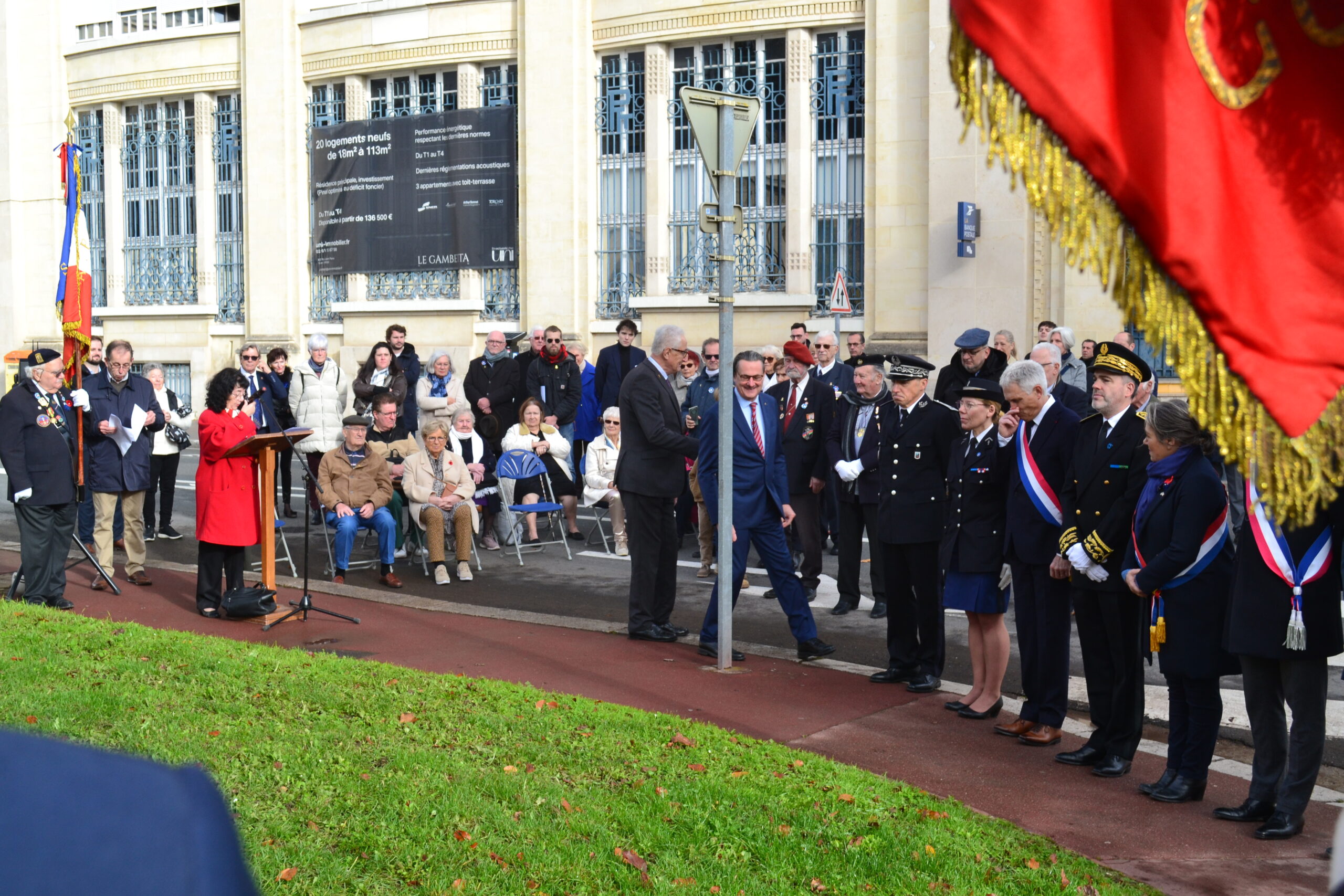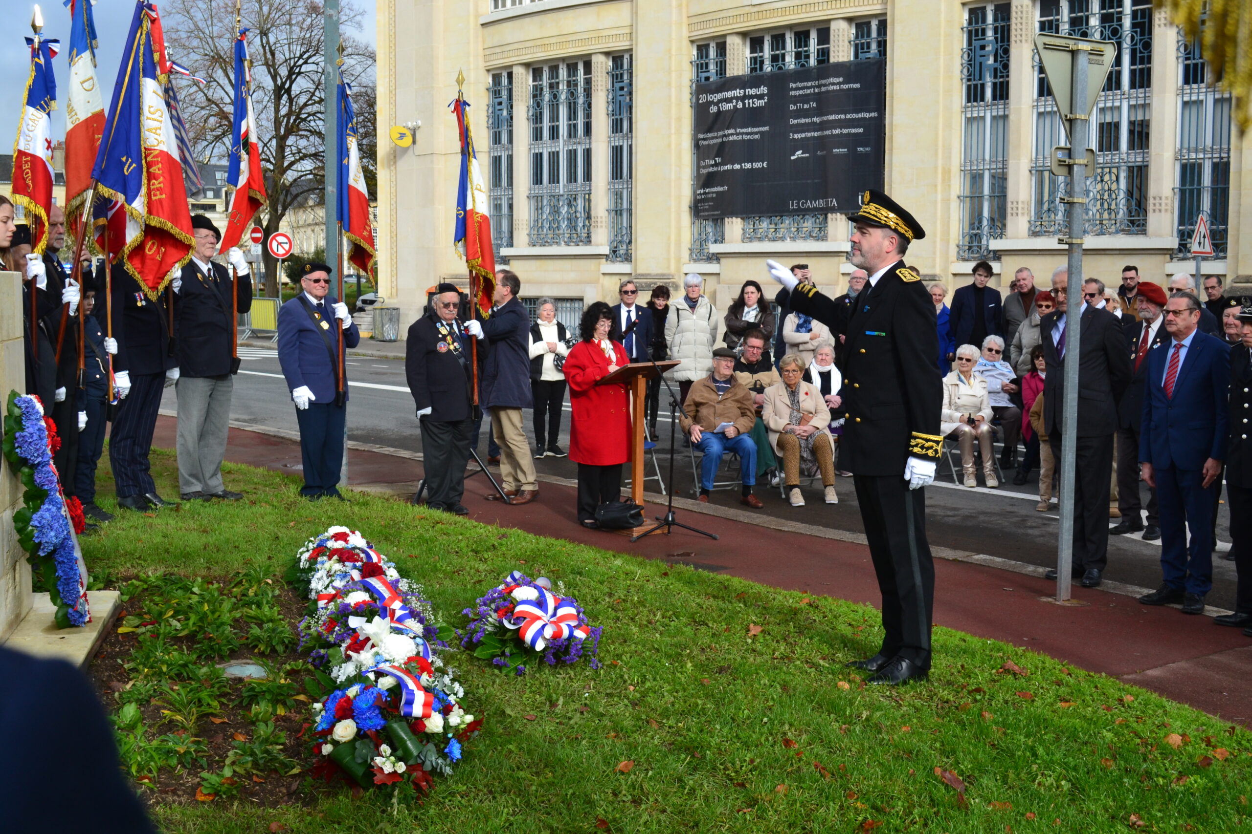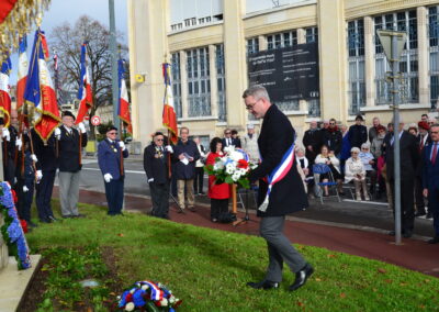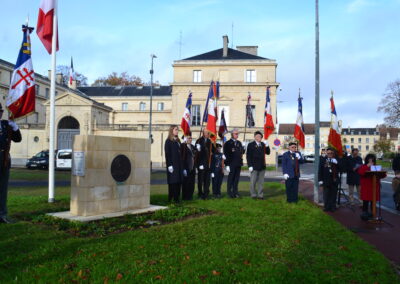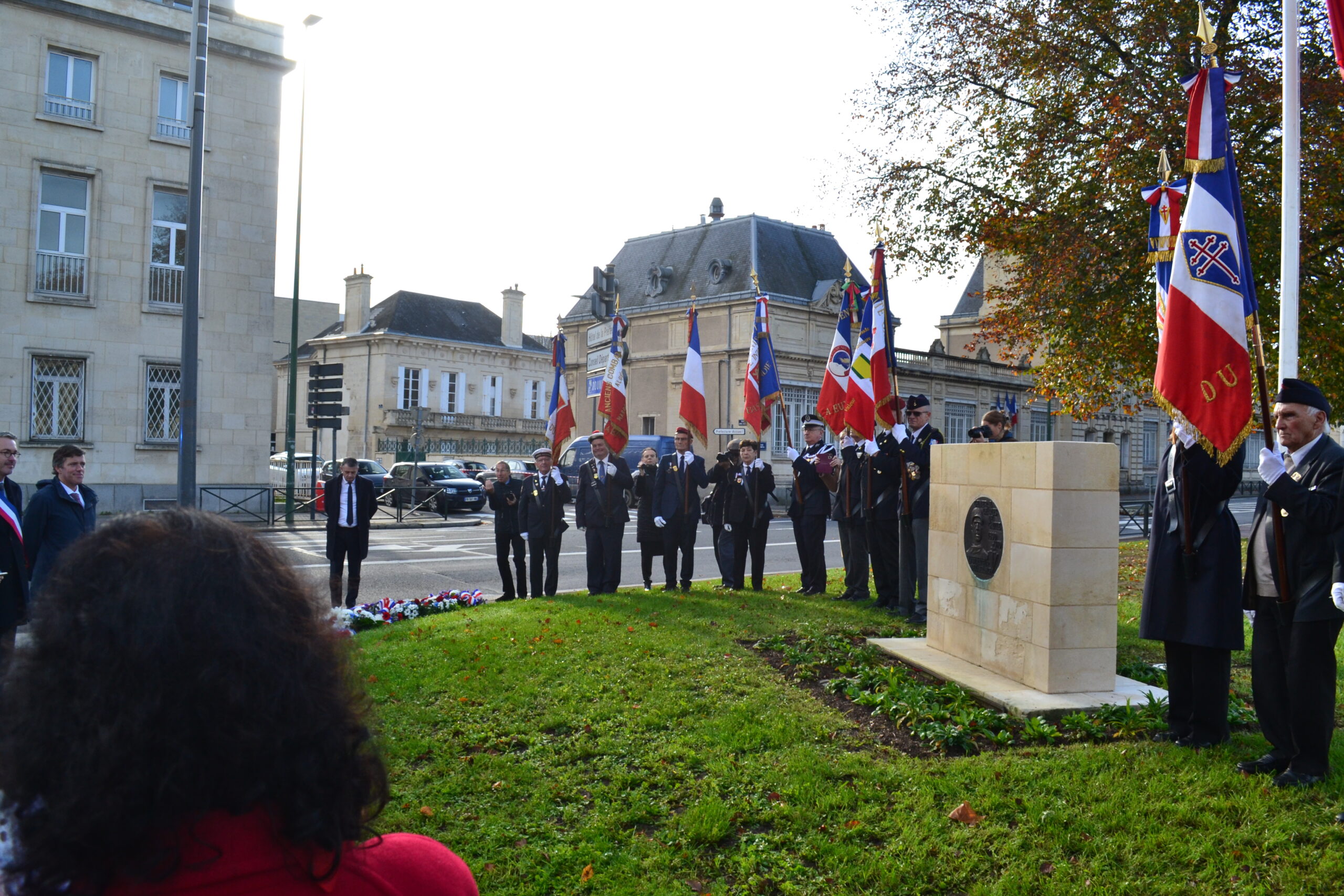 Une multitude de drapeaux d’anciens combattants s’inclinent durant 5 longues minutes de silence. A l’issue, un ancien combattant présent déclare : « Dans les régiments, il faut un porte-drapeau, fier, courageux. De Gaulle c’était ça ».