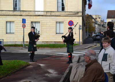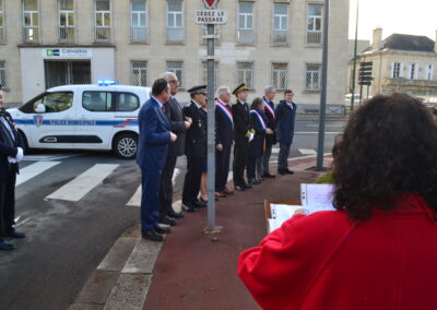 Des rassemblements identiques sont organisés en même temps à Bayeux, Lisieux, Vire, Falaise, jusqu’aux plus petites communes pour rendre l’hommage d’une région à celui qui, en posant les pieds sur ses rives le 14 juin 1944, s’est attaché pour jamais l’affection toute particulière et l’admiration sans mélange des femmes et des hommes de ce territoire normand.