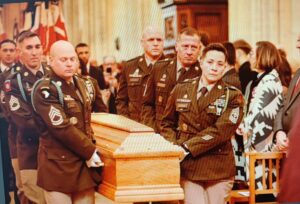 La cérémonie a eu lieu le 12 décembre dernier en la cathédrale de Bayeux. Des soldats en uniforme US et l’hymne américain l’accompagnèrent. Un homme aux valeurs exceptionnelles, respectueux de la vie : un message pour les jeunes générations.
