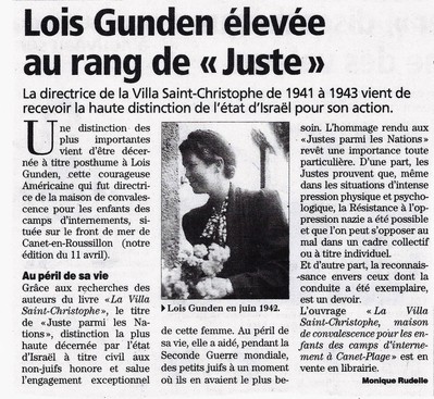 1°) Loïs Gunden (1915/2005) sera reconnue « Juste parmi les Nations » le 27 février 2013 à titre posthume. Elle a été arrêtée en janvier 1943 par les Allemands. Libérée en 1944, échange de prisonniers. Reprend son activité d’enseignante de français à Goshen.