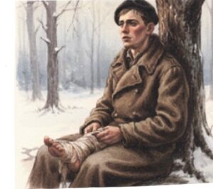 En février 1945, au plus fort de l’hiver, une nouvelle occasion se présenta. Seul, il prit la direction du sud à travers les zones gelées. Pour protéger ses pieds suppliciés, il confectionna ce qu’il appela toute sa vie des « chaussettes russes » : du papier entourant les membres, maintenu par de la ficelle. Les douleurs étaient telles qu’il ne pouvait supporter le port de chaussures, même récupérées sur des cadavres croisés en chemin.