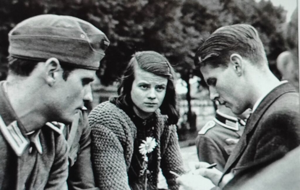 Mai 1942 : Sophie commence des études de biologie et de philosophie à l’université de Munich. Des discussions se font jour dans la famille, son père Robert est farouchement opposé au régime nazi, tandis que son frère Hans, né le 22 septembre 1918, étudiant en médecine puis infirmier sur le front de l’Est rapporte ce qu’il se passe envers la population russe et les juifs.
